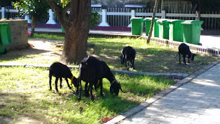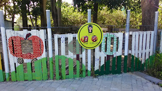 接著是我感動時刻,因為主任及組長帶著我做校園巡禮,讓我見識到甚麼是潛力學校,用心呵護的校園,全校只有6個班,校園雖迷你,但樹長的好高好大有南洋衫(20多棵,每棵價值超過20萬,哇~令我睜大雙眼)、桃花心木(林業局有特別勘查過,樹齡超過50年以上3棵樹木超過一輛BMW)數不盡的果實有許願芒果、酪梨、絲瓜棚、橄欖等,最重要的是學校有羊喔!共有5隻,並且有高級羊舍可居住,學生志願清洗羊舍,並無志工時數,學生依舊開心照料,更重要的是該校社團頗出名"舞獅團、三太子團"對外比賽榮獲代表權,若不是老師們悉心照料,學生如何展現自信。真的感謝組長為我解說校園點滴,包含學校小黑蚊如何根除,生態池及校園造景,我真的佩服偏鄉教師,謝謝你們守護偏鄉孩子^^