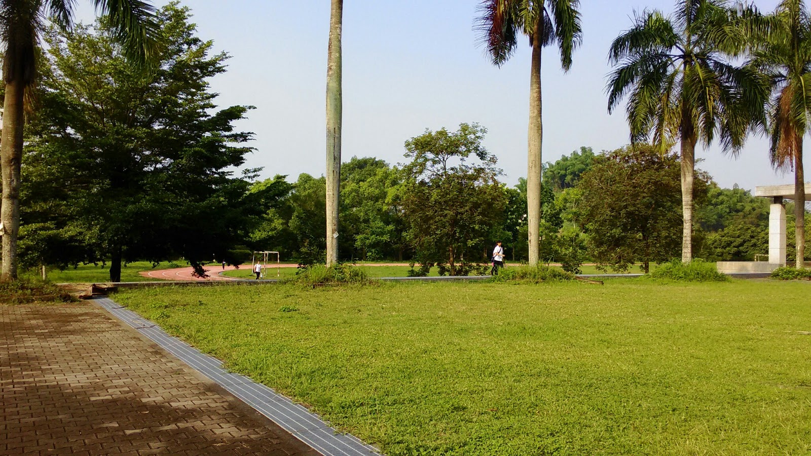 | 望向操場的一端,學生入入續續上課 |