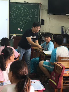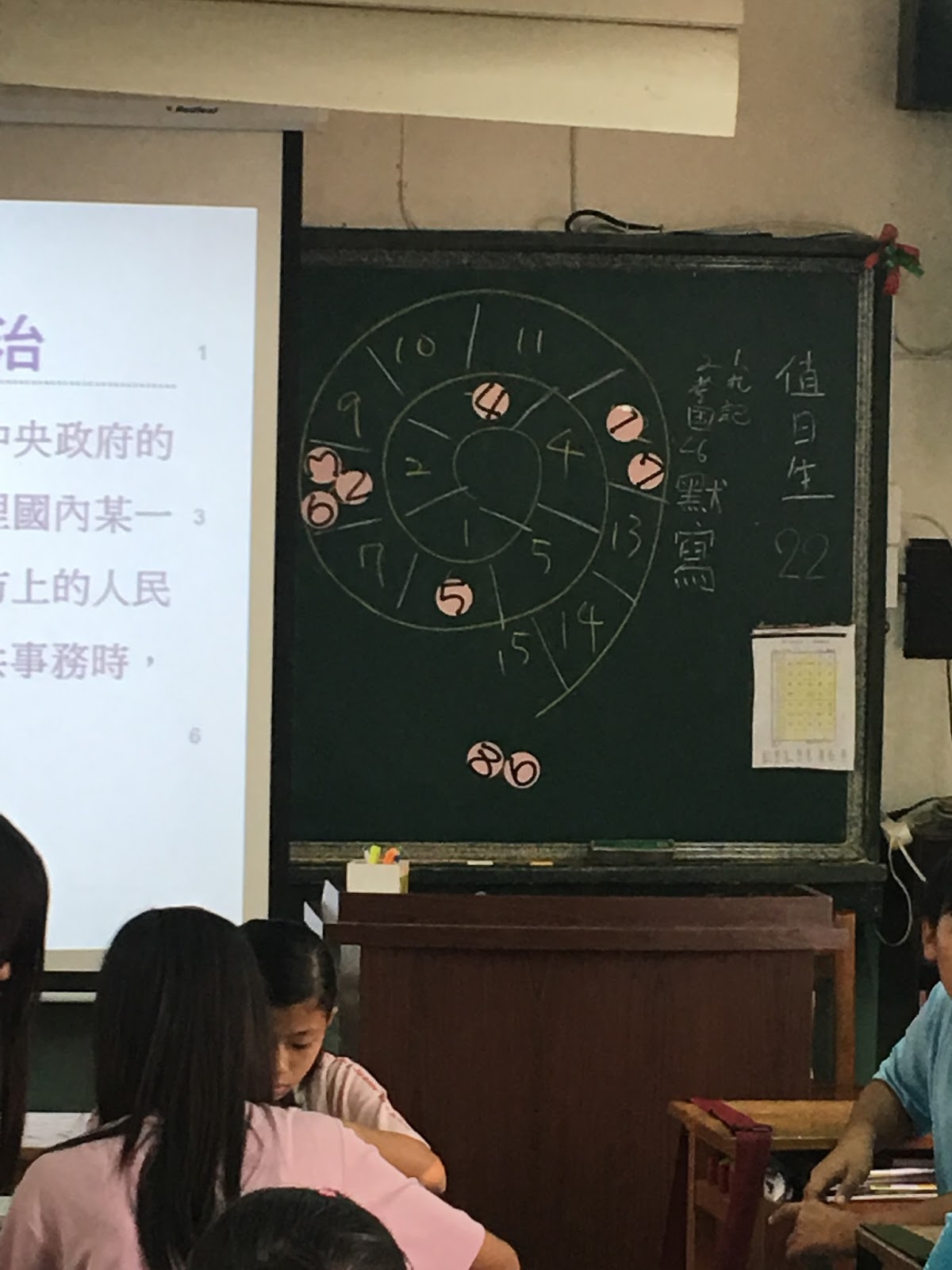 而海螺計分與撲克牌計分的巧妙運用與轉換也是本次觀課開心的收穫之一,每一次課程告一段落後,就請各組到黑板上將組別貼在適度的分數上,再將撲克牌交還給授課教師,這樣老師就不用擔心學生需要一直上台計分,又可以讓學生轉換一下教學模式,最後最高分的組別再依童軍轉換模式第一組7分第二組6分...依序進行,至段考前大加的差異並不會太大,也能各憑本事!