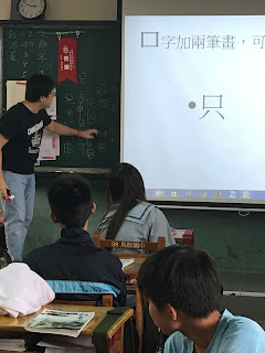 再來為了讓他們真正體驗合作的能力,透過「口」字加2筆畫會形成哪些字,寫越多分數加越高,孩子並不吵鬧,擔心答案被隔壁同學察覺,音量小小的,反而是教師組好開心!接著老師檢測各組寫的生字量,最多加7分,有組別只想4個字就沒有了!老師接著讓學生開始依序上台寫出有哪些延伸字,但別組出現的將不能重複,直到最後一組~結果大家激盪出來的字遠超乎我們想像「只、申、由、旦、甲、占、口十、台、兄、叨、目、右、田.......」總共創出25個字呢!老師引導了學生,問大家從遊戲中發現甚麼??